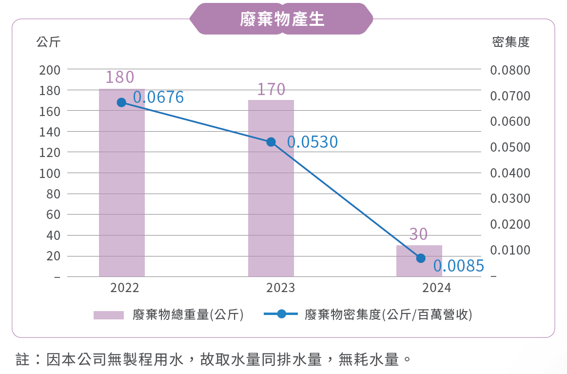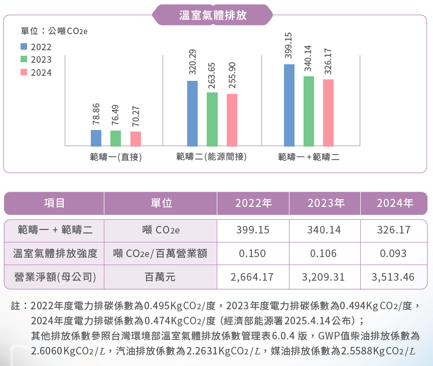 備註:以上統計數據僅為母公司溫室氣體減量、減少用水之量化管理目標