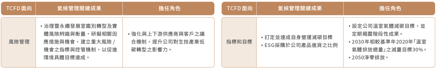 氣候管理成果與發展目標