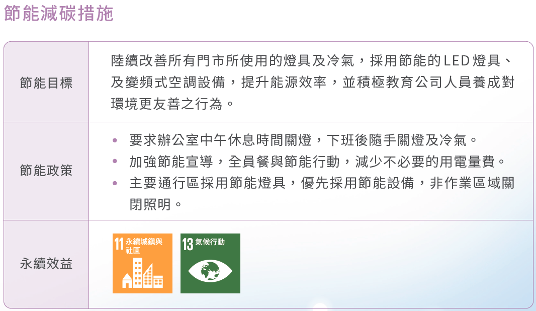 - 7. 門市空調系統汰舊換新,60%空調設備更換為能效1級產品。