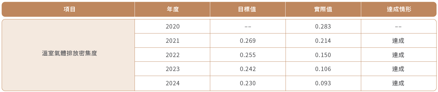 2020年為基期年,溫室氣體減量管理目標達成情形: